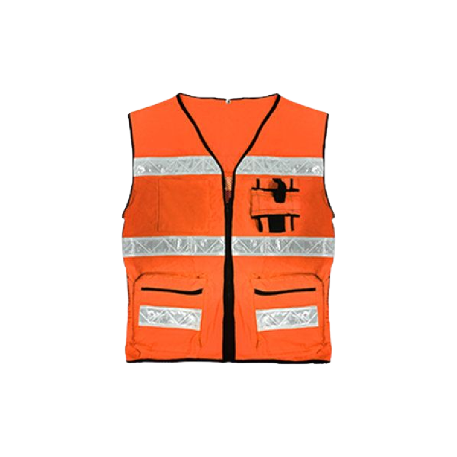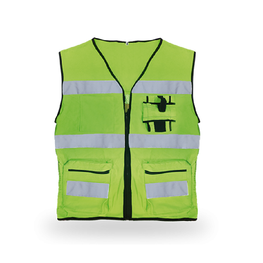 CHALECO REPORTERO CON MALLA EN ESPALDA 50% ALGODÓN, 50% POLIÉSTER, REFLEJANTE TEXTIL DE 2″, TRES BOLSAS FRONTALES Y UN PORTA RADIO. COLORES: VERDE LIMÓN, VERDE BANDERA, AZUL MARINO, NARANJA. TALLAS: CH – MED – GDE – XG – XXG.