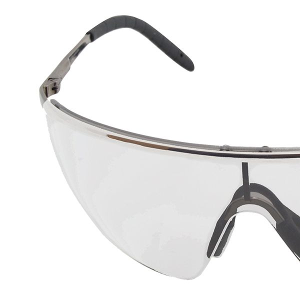 Lente de policarbonato, disponible en varios colores de micas, soporte nasal, filtro UV, tratamiento antirayaduras, armazón metálico. Mica clara con armazón metálico con goma antideslizante, cuenta con resorte amortiguador de acero templado, lo que hace un lente muy completo y cómodo, además de contar con tratamiento antirayaduras, soporte nasal, asi como filtro UV.